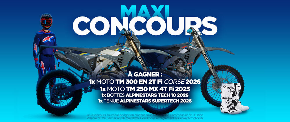 Chez FX Motors, nous connaissons les besoins bien particuliers des pilotes de cross et d'enduro. Notre objectif : y répondre au mieux, en sélectionnant des produits de qualité et des marques reconnues pour leur fiabilité. D'autre part, nous proposons la livraison relais dès 5€95, ainsi qu'un service clientèle disponible, pour répondre à toutes vos questions.